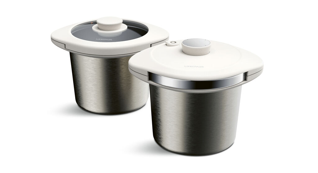 In order to improve safety for the use of pressure cookers, GALAXY follows a new design concept: the recessed grips as well as the lid and other heat-conducting components are completely covered with plastic. In addition, the easy-to-clean steam valve is placed at 45 degrees to the handles to prevent scalding. The stainless steel pressure cooker is available with two different lids in various colours.