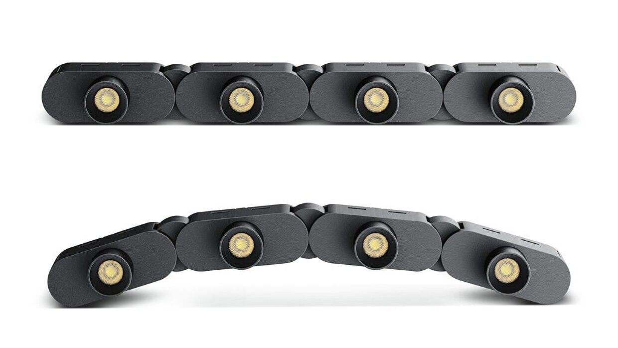 Thanks to its bendable material, this magnetic luminaire can be easily placed on both linear and curved power tracks. Thus the track light, which is controlled via an app, can illuminate even difficult to access areas of a room. The lightweight housing is equipped with a N40 neodymium magnet, which makes it easy to plug and unplug the light modules. In addition, the low voltage of 24 volts allows for safe installation and maintenance.