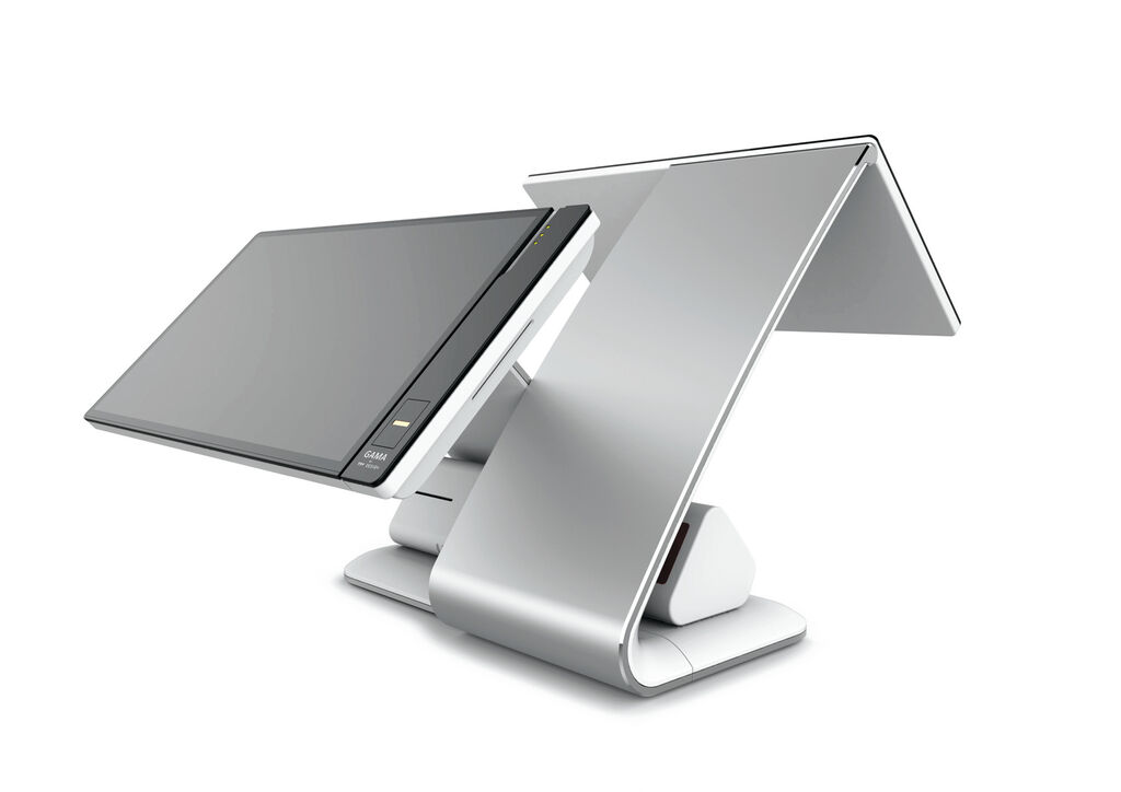 This space-saving solution fascinates with an elegant design idiom. The system satisfies high user demands and successfully balances form and function. It integrates all key elements at the point of sale, such as inventory management, advertisement, scanner, payment processing and printer, into one effective device. An overall sophisticated interpretation, the GAMA POS system sets new standards for the future of the retail sector.