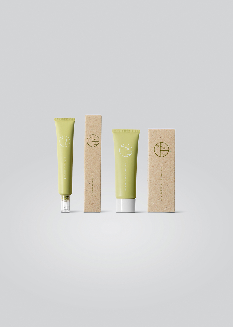 “Gaon” is the Korean word for “centre”. This item is a vegan skincare product focused on protecting the skin’s centre. The logo contains Hangul letters in linear and circular form. The packaging design is minimalistic. The tube is green in order to highlight the product’s natural ingredients and to refer to the image of a good vegan cosmetics brand. The outer packaging made from paper is ivory-coloured, emphasising the natural approach of this skincare. It is printed using environmentally friendly soya oil without any coatings or other refining processes.