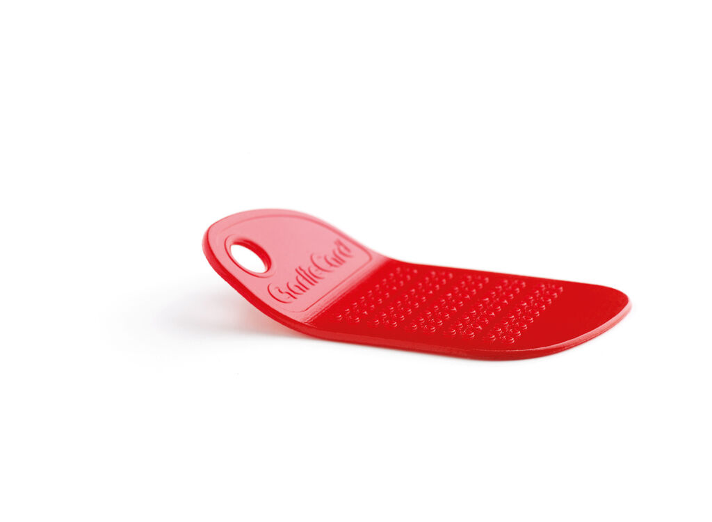 GarlicCard is the invention of the Swedish chef Herman Rasmuson and is a genuine alternative to regular, often difficult to clean garlic presses or razor-sharp kitchen graters. The plastic card has a specially embossed grating surface which allows for shredding garlic cloves quickly and without effort. GarlicCard is easy to handle, being only about the size of a credit card, and has a holding surface which is bent slightly upwards.