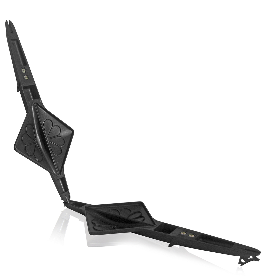 The function of this toaster is focused on the comfortable preparation of a toasted sandwich. Efficiently, the newly designed profile of the two toaster plates seals the toaster at the edges and cuts the toasts into halves, leaving the sandwich filling undamaged. The hinge restricts the opening of the toaster to an angle of 110 degrees making it easy and safe to handle the hot toaster.