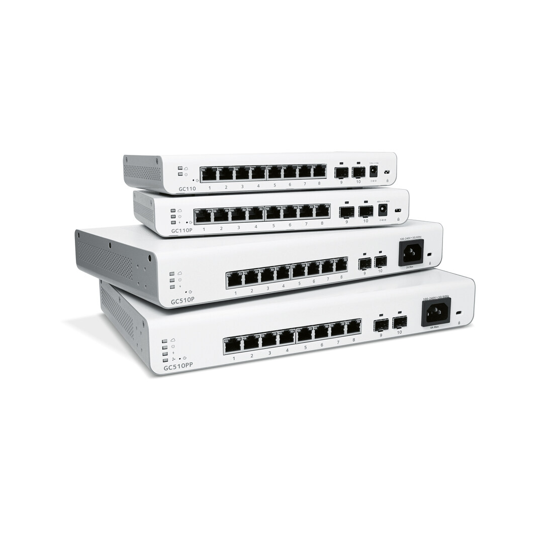 The GC series network switches are versatile and easy to manage. With their modern, plain design, rounded edges and neutral colouring, they appear less technical and blend into any environment. The user interface is also reduced to the essentials, consisting of only two LEDs at the front providing the user with all information required. The devices are configured with a corresponding app, which, thanks to the cloud connection, enables network management and monitoring from anywhere.