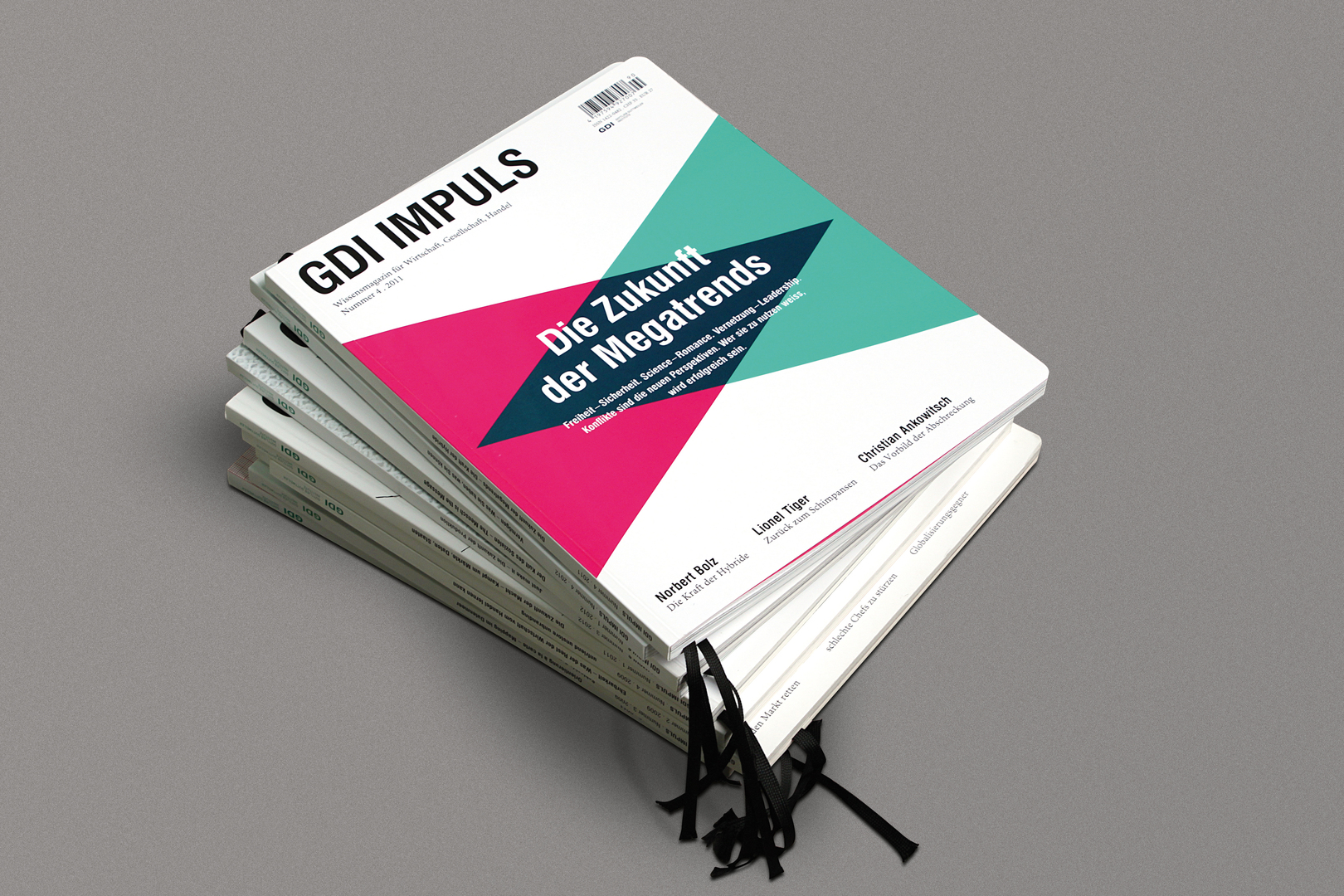 GDI Impuls, the magazine of a Swiss non-profit organisation, focuses on a single topic each issue. Every edition in 2012 chronicled a paradigm shift, a revolution, a radical change or a mega trend. These four magazines communicate these topics with powerful design and painstaking attention to detail. Illustrations, one or more 12-page photo spreads per issue, informative charts and graphs, spot colours and UV spot coatings are some of the elements employed to translate the publication’s content into a strong visual landscape.