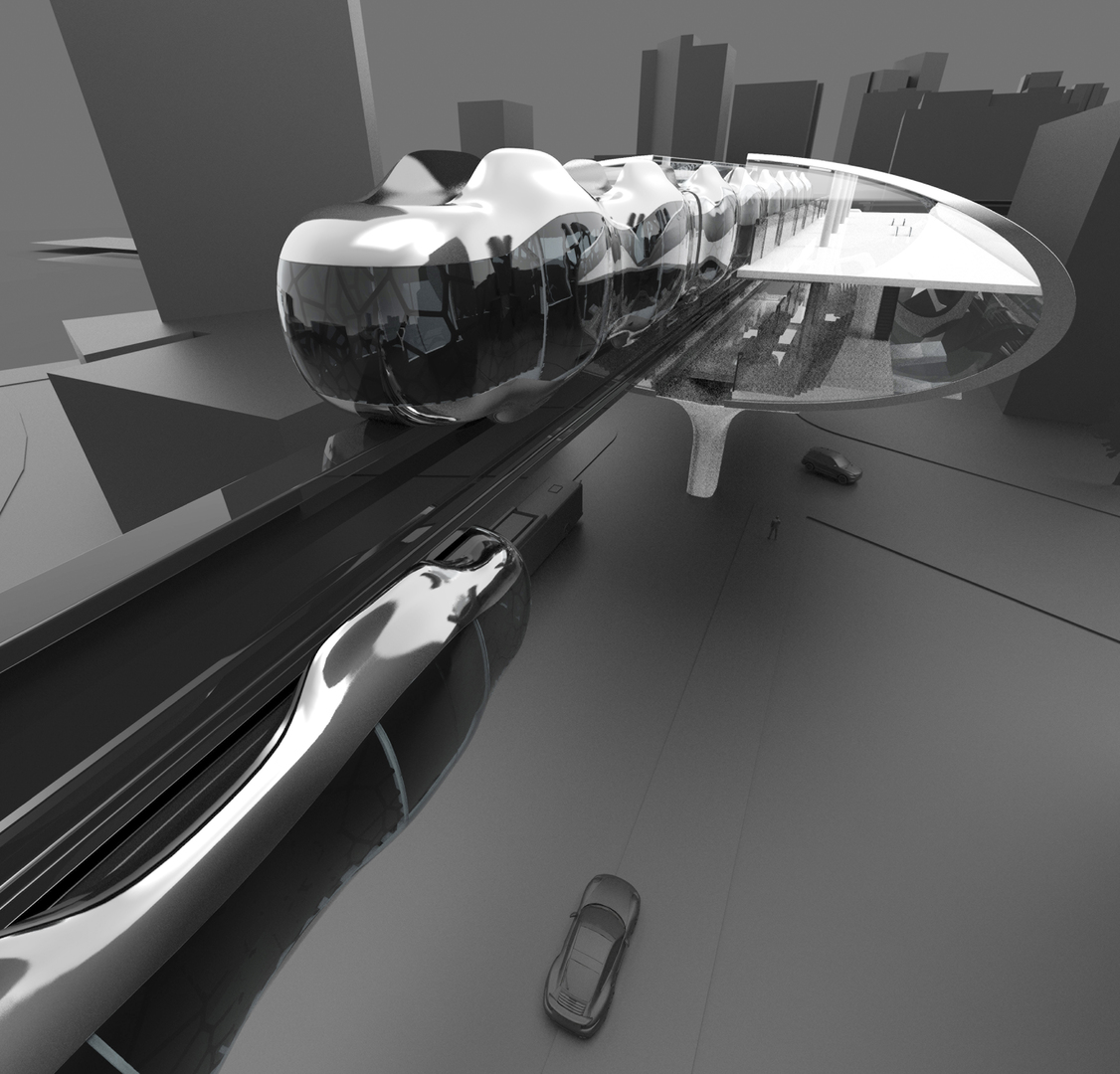 Geminus is a rail design solution where only one track is required for trains running in both directions – one on top of the track and the other, under the track. The compact design makes it suitable for existing high-density cities as it would take up less space and would not require much excavation works. Geminus has 4 carriages on a single light rail magnetic levitation train system. With only 4 small carriages, the train has a smaller turning radius, making it easy to manoeuvre around existing buildings. The magnetic levitation trains operate with less noise and energy, which makes for a more comfortable ride. Train platforms allow for boarding on both sides of the train to ease boarding congestions. This high-rise monorail system has a lower cost compared to the underground rail and takes up less space in an urban environment.