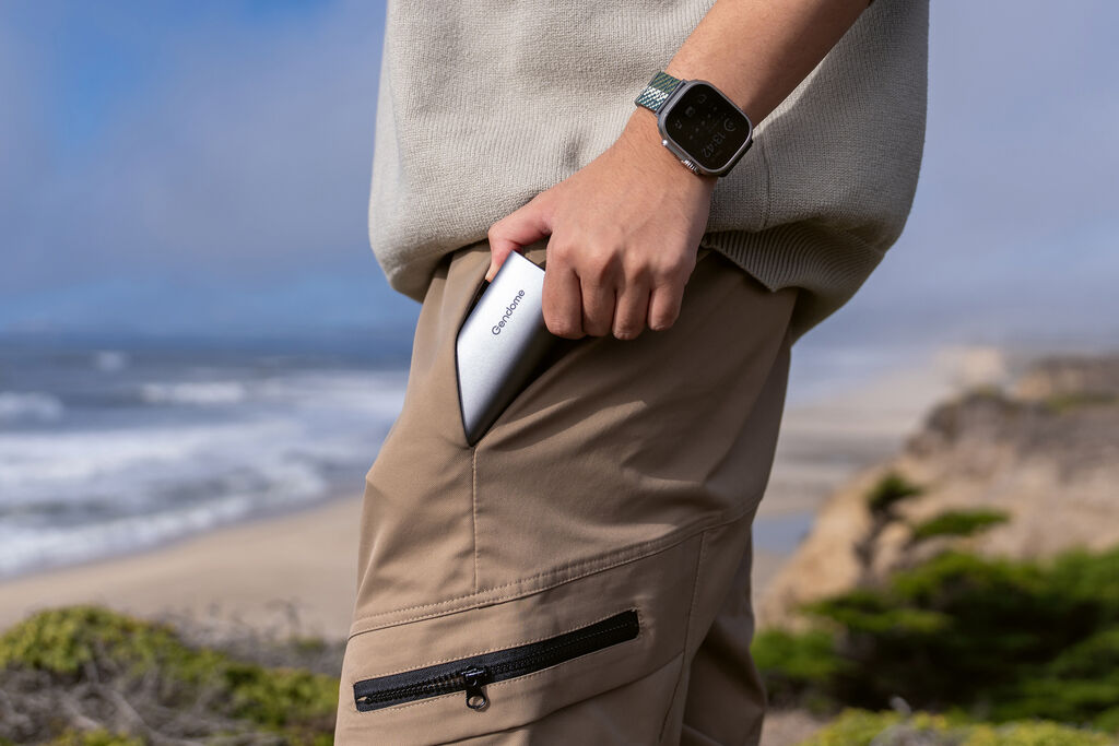 The Gendome Micro Power Bank 15000mAh is a durable power bank with a capacity of 15,000 mAh, a high-performance battery and three ports for charging multiple devices simultaneously. An integrated wireless charging module powers wearables such as the Apple Watch or earbuds without the need for cables. With IP55 certification and a full metal casing, the device is particularly well suited for outdoor use. An integrated cable allows for spontaneous charging anytime, anywhere, without requiring additional accessories.