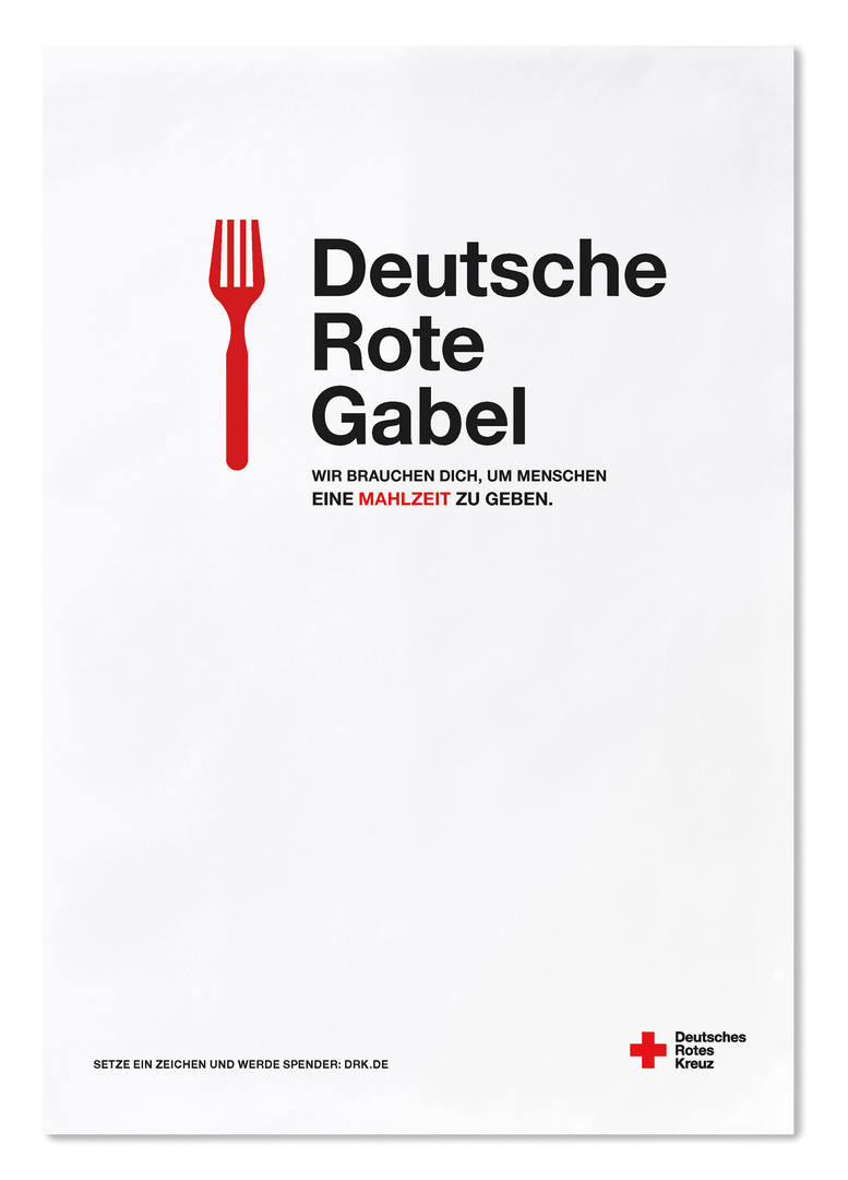 The number of members and supporters of the German Red Cross is decreasing. The aid organisation has become so large that its many tasks are not clearly discernible. The recruiting campaign puts a spotlight on these tasks by breaking with the rule of not touching the logo. The word and design mark has been converted into individual logos, which show the areas in which the German Red Cross is active. For the search of missing people by rescue dogs, the Red Cross was transformed into the German Red Dog. This simple change of the logo confuses onlookers at first, but, at the same time, provokes thought and encourages them to take action.