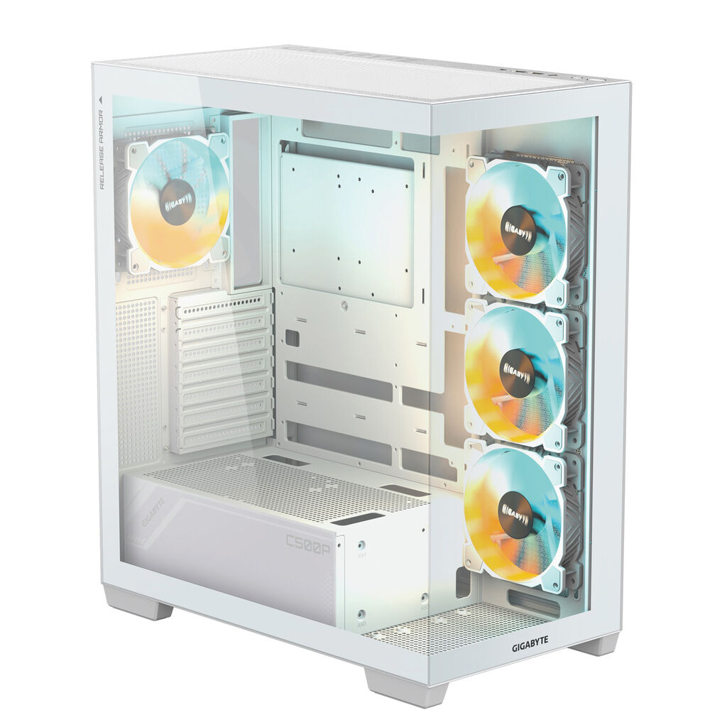 The GIGABYTE C500 PANORAMIC STEALTH ICE has a thrilling futuristic appearance and is equally impressive for its well thought-out modular construction.