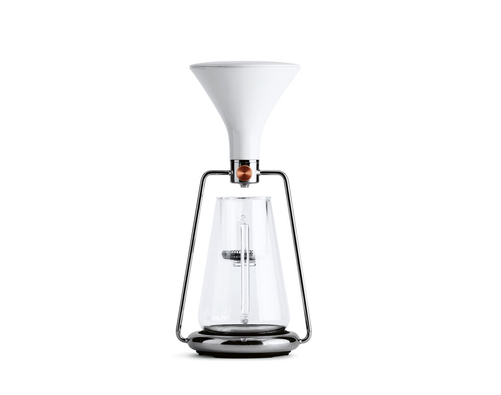 Gina is a manual coffee maker which combines classical brewing methods with new technology. A choice of three brewing modes is given: pour-over, full immersion und cold drip. Gina is composed of a steel frame with smart scale and timer, a ceramic filter with lid and drip valve as well as a jug of borosilicate glass. An app guides through the brewing process and displays the values given by scale and timer, so that one’s own creations can be saved and shared.