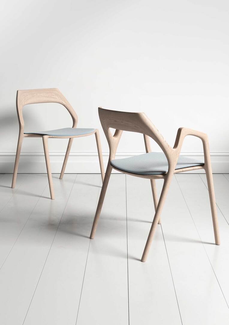 Ging are solid wood chairs with a unique shape that is both dynamic and stylish. The distinctive design and form are intended to make a strong first impression and entice people to touch and feel the quality of wood.