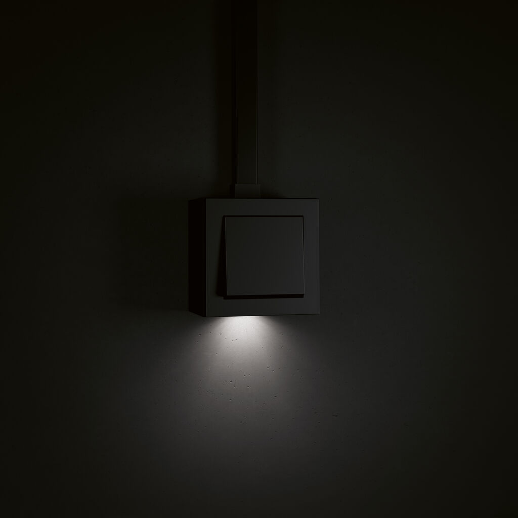 In addition to flush-mounted switches – including a particularly flat version – the Gira E2 switch range also includes a special surface-mounted switch that resonated with the jury: The Gira E2 Surface-Mounted Housing with Illumination Element can simultaneously serve as an orientation light for dark corridors and stairs. For this purpose, an LED lighting element with minimal power consumption can be inserted into the cable entry instead of the adapter. Gira E2 surface-mounted switches are available in black matt and pure white glossy.