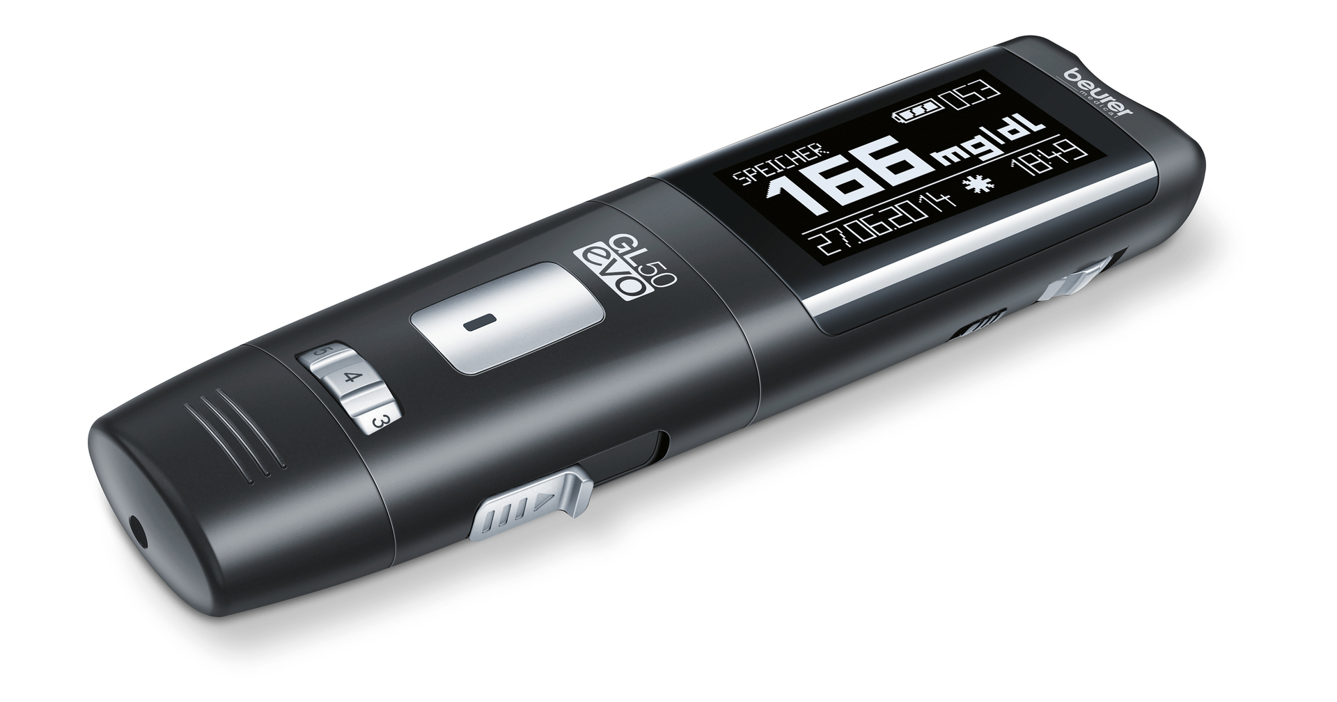 The GL 50 evo is a blood glucose monitor, lancing device and plug-in USB flash drive rolled into one. The plain text display ensures that measurements are shown clearly. Average values for 7, 14, 30 or 90 days can be specified. With the help of three different symbols, the user can define whether measuring has taken place before or after eating. The measurements can be transferred to a smartphone or computer via Bluetooth or USB connectivity.