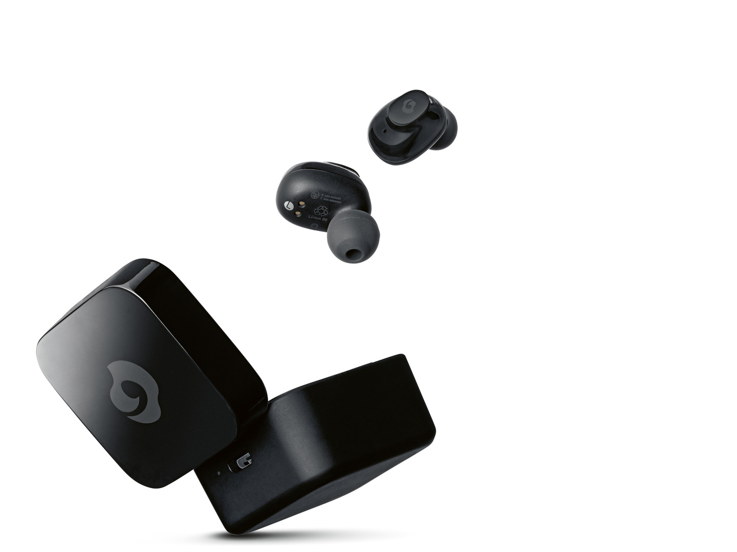 The GLIDiC Sound Air TW-5000 in-ear headphones are extremely compact, thus providing a comfortable user experience when listening to music or making calls. Their ergonomic design and organic shape ensure a comfortable fit. Circuits and batteries are accommodated in the smallest space possible, allowing for a product as tiny and lightweight as possible, as well as high wearing comfort over a longer period of time. No space is wasted in the charger case, either, which picks up and carries forward the design approach of the earphones.