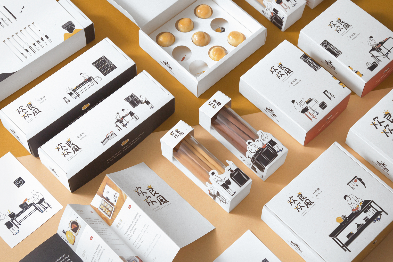 This project is based on the target of helping others and contributing to society. “Going Straight” features gift packages for products, such as cakes, made by prison inmates. The packages of the cakes are designed in black, white, orange and gold yellow, with orange representing the flames in an oven and golden yellow standing for the cakes. The various boxes are decorated with hand-drawn illustrations which depict work scenes to provide insight into prison life. The outer packaging features rectangular recesses which are reminiscent of barred windows.