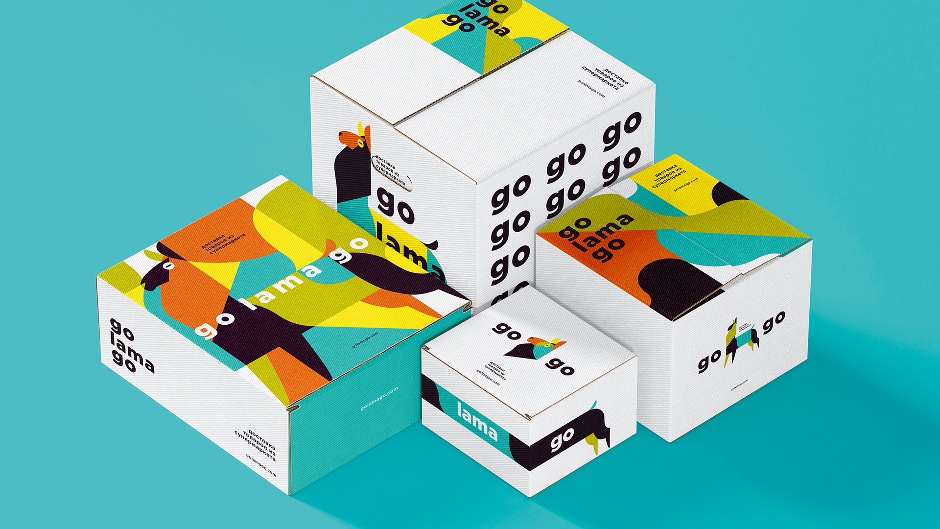 Golamago is a new kind of delivery service offered by Russian supermarkets. Its brand design was based on lamas, using their image as fast and elegant animals. The dynamic-sounding name was rendered in the form of a word and figurative mark, with a lama as the key visual at its centre to grab attention. Its design, in the form of geometrical coloured blocks, is inspired by the Russian avant-garde style of art and has become the heart of the visual identity. From the mobile app to the delivery box, the consistent implementation of the brand design achieves a striking impression.