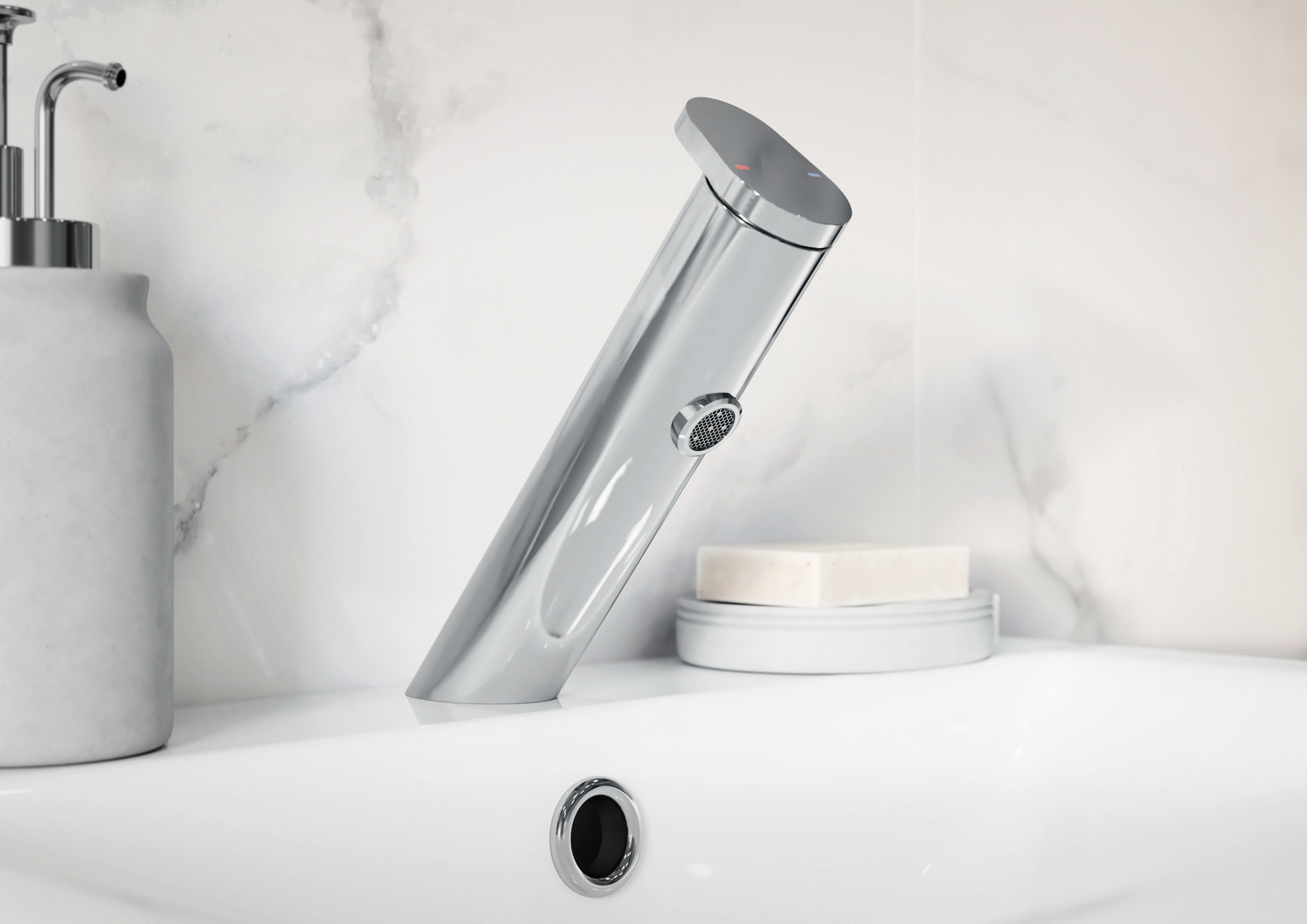 The form language of the GoodHome Nyasa basin mixer stands out from conventional design concepts. Its water outlet is integrated directly into the cylindrical body, which is strongly inclined towards the basin and features a flat and oval, top-positioned rotary control that is both ergonomic and functional. Pulling the handle forward opens the tap; rotating it to the left and right regulates the temperature. A regulator reduces water consumption by 40 per cent, while the aerator is designed to avoid water splashes.