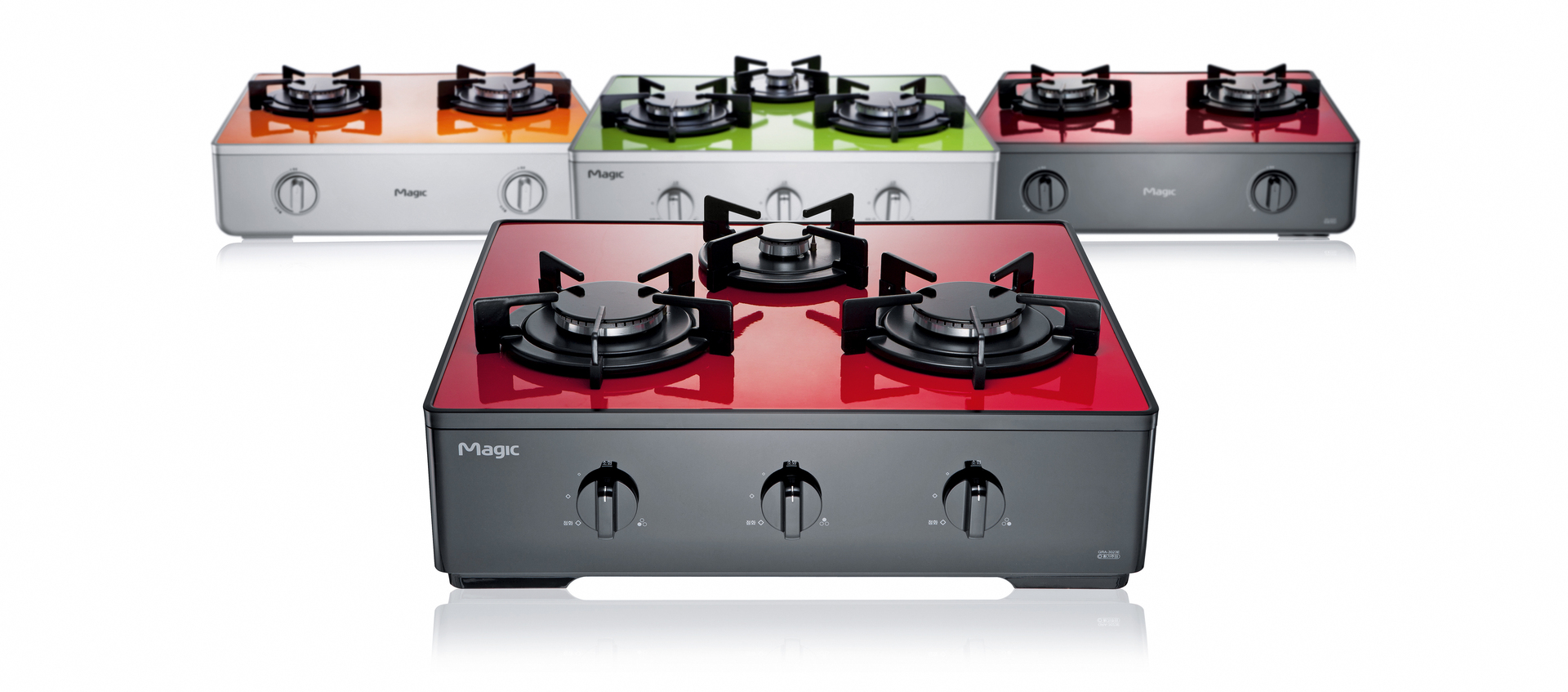 This gas cooker was developed for the Asian market. The design is focused on striking colours that are emotionally appealing. With the option of either two or three burners, the gas cooker is suitable for family kitchens. An innovative vivid stone coating permanently protects the surface and makes it easy to clean. Due to the integrated eco burners, the environmentally friendly device keeps emissions at a very low level.