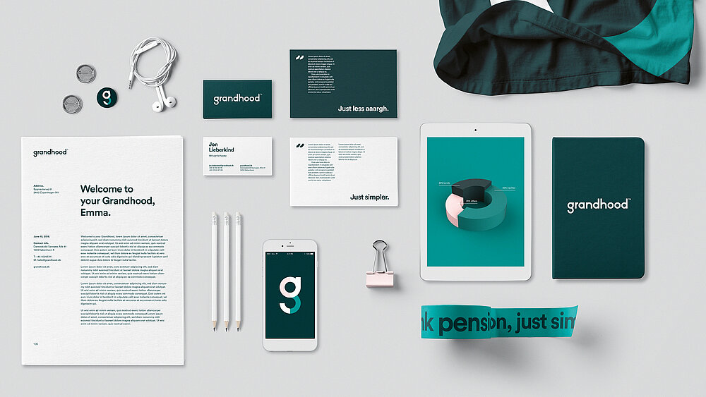 Grandhood is a venture company on a mission to transform the predictable world of pension. The company has reinvented a product that helps people deal with and understand their pension savings. The challenge was to unfold and communicate the innovative solution in a brand identity. The name Granhood was created to manifest the actual grandness of retiring. A modern, minimalistic and simple verbal and visual universe was developed to convey the message of a simple pension solution, which makes it easier to understand navigate and grow your pension. Grandhood seeks to reshape how pension savings are handled and understood by young and midlife professionals.