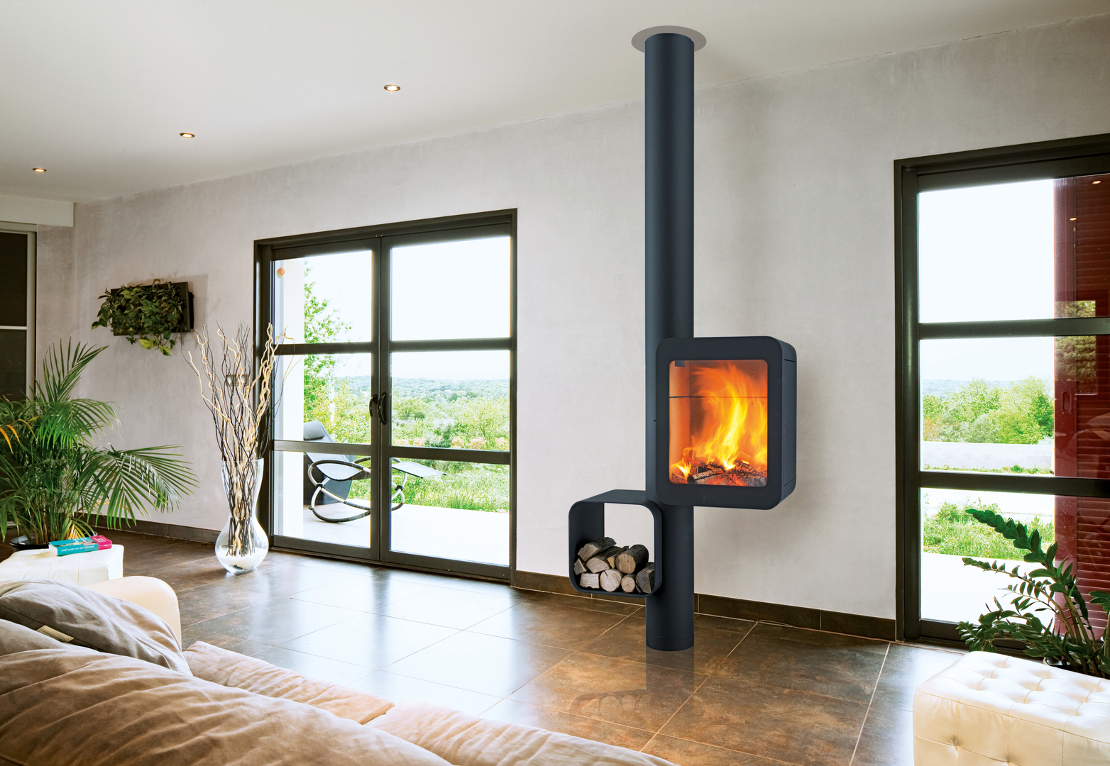 The individual components of the Grappus wood-burning stove are arranged in a rhythmic structure. The hearth is mounted at a comfortable height for users forming a counterbalance to the wood storage box. The wood is loaded through a side-mounted flap giving the front view a purist look. The self-supporting, triple-insulated combustion chamber is made of steel and vermiculite. It draws its combustion air from outside. The stove is designed for the use in ultra-low energy houses. The large glass panel stays clean during the combustion process.