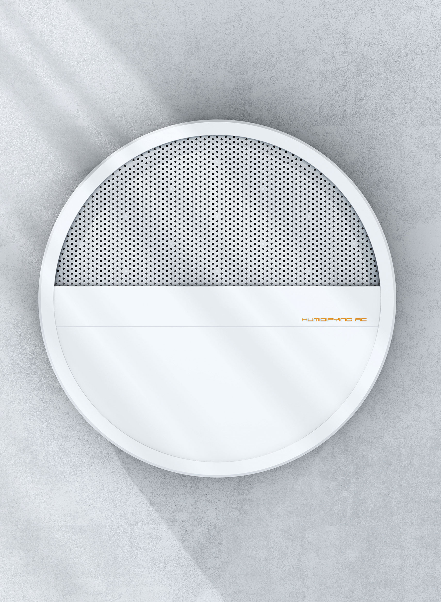 This air conditioner innovatively combines absorbent material and aluminium to balance humidity through gravity. Its circular design with micro-perforations enhances aesthetics and airflow. In dry air, the absorbent material humidifies, while in humid air, the aluminium dehumidifies through condensation. This energy-efficient system saves 30% of electricity, 60.75 million kWh annually, and reduces 6040 tons of CO2 emissions.