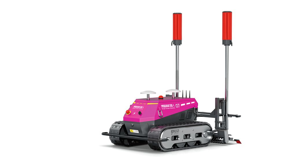 The BDR-1 ground troweling robot is mainly used in the troweling and finishing process of the initial setting of concrete in construction work. Thanks to high-precision laser measurement and a real-time elevation control system of the tail plate, it can accurately control the level of the concrete slab surface. The lightweight body, combined with the crawler mechanism, ensures safe operation even during the setting of the concrete. A GNSS navigation system to control the chassis provides automatic navigation through the specified area.