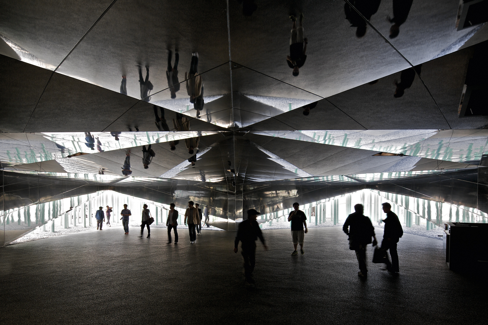 At the Expo Korea, the GS Caltex Pavilion illustrates the company mission and the future visions of this Korean oil corporation. It took the form of a dynamic ensemble that, at first glance, was reminiscent of an oversized rice paddy: 18-metre-high blades swayed like grass in the wind and became illuminated when touched. In the middle of this energy field was a mirrored pavilion building with a similarly mirrored entrance hall aimed at evoking a sense of social interconnectedness and collective networking. A 360-degree film metaphorically drew the visitors into the world of energy.
