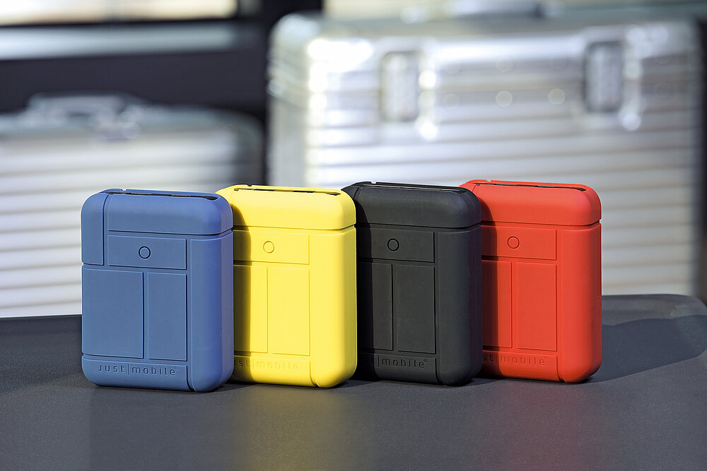 The Just Mobile Gum Max Duo high-performance battery has a charging capacity of 11,200 mAh. It can charge a mobile phone and a tablet at the same time, thanks to its two USB connections. Eight LEDs show the current charge status. This high-performance battery can easily be charged using a standard USB connection. The device has a very elegant aluminium casing, which is protected by a rubber, shock-proof cover for use on the move.