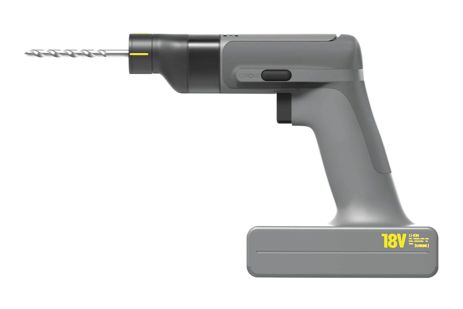 GYRONE takes handheld drilling procedure to the next level and improves the process by supporting the operator. It is made up of four components: the guidance unit, which provides the technician with information about the position and characteristics of the hole to be drilled; a digital spirit level for accurate positioning; a scroll wheel and finger button for controls; and an internal gyroscopic stabilisation unit.
