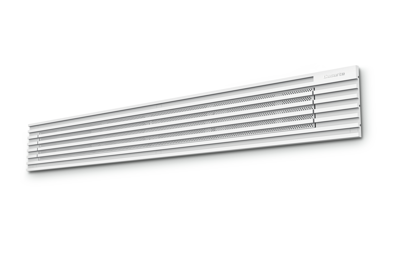 This central air conditioner has an air outlet panel fully perforated with micro holes, providing soft, pleasant airflow. The continuous grille design connects the guide plate, functional area and decorative strip, giving the product the appearance of a closed unit and also making it slimmer. The air conditioner allows cooling, heating, flat blowing at the top and comfortable airflow downwards.