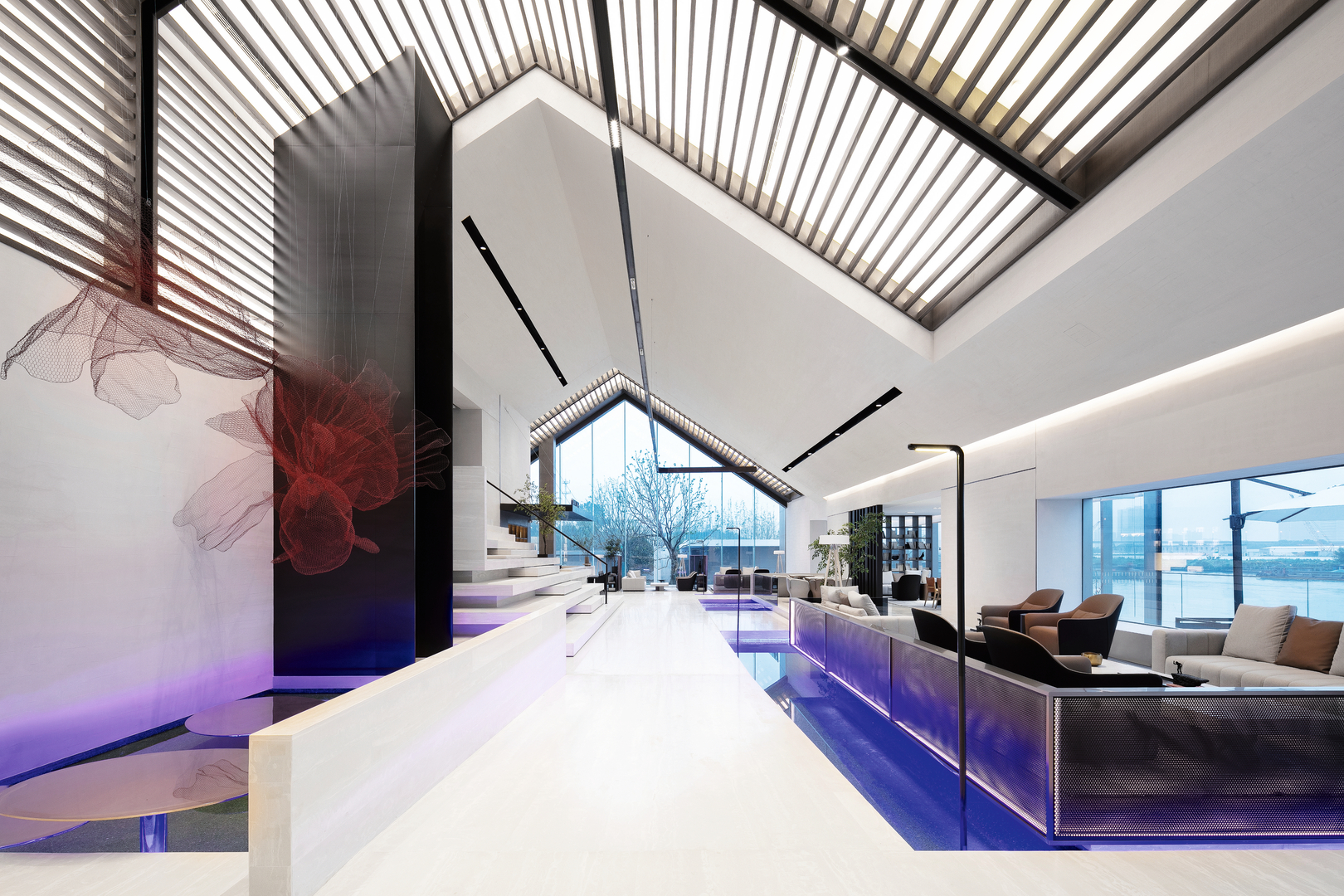 The Hangzhou China Canal Bay exhibition centre has a strong visual identity and is situated on the Grand Canal in Hangzhou. It houses two separate, but interconnected offices. The left- and right-hand sides of the building are connected by elegantly functional corridors that effectively accentuate the contours of the space. Pools that imitate the flow of the watercourse transport the motif of the canal from the outside to the inside. The aim of the design is to encourage the visitor to reflect on both the past and the future of this site.