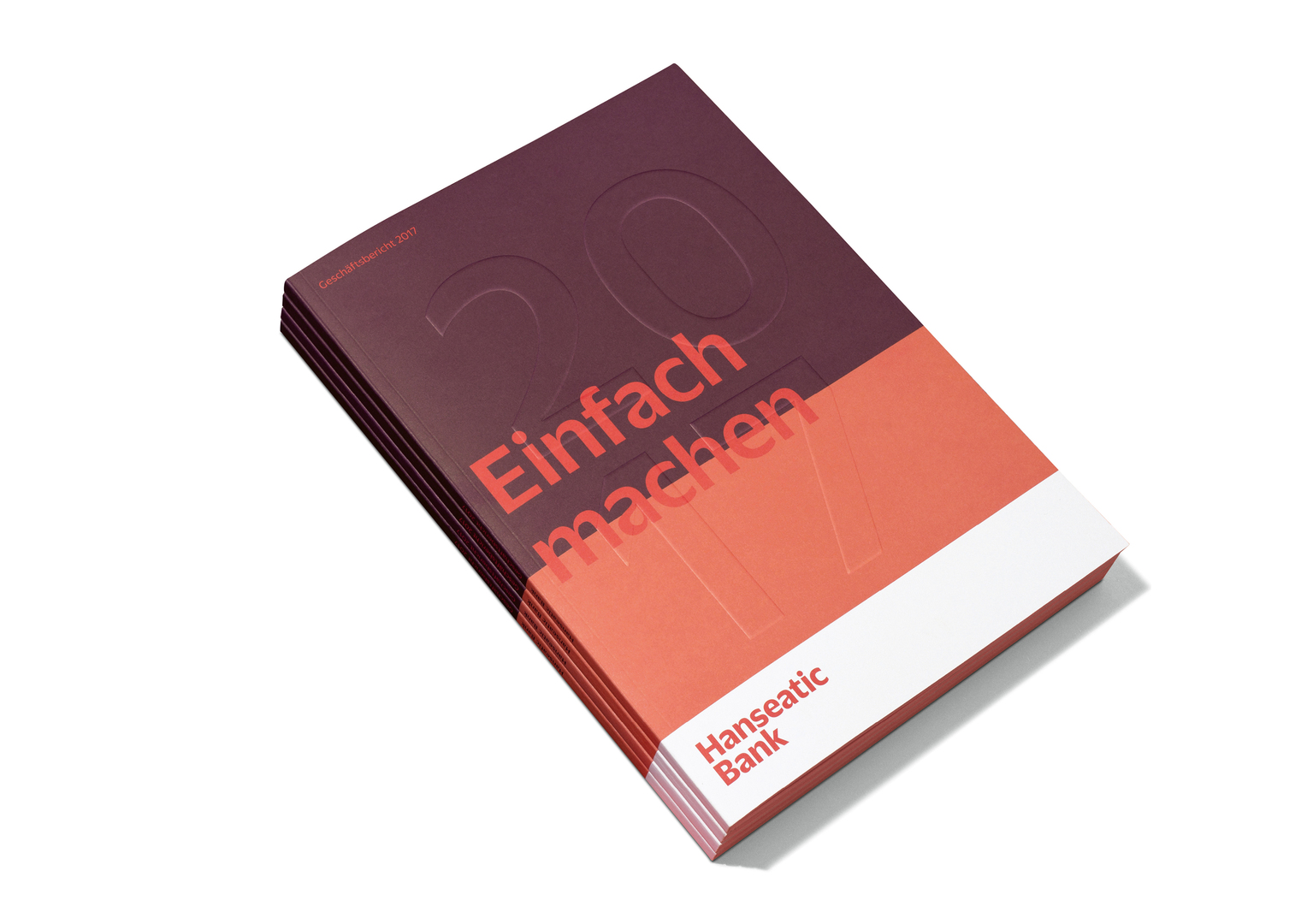 The underlying philosophy of Hanseatic Bank is reflected in the ambition that its services are simple and self-explanatory. With the motto “Einfach machen” (Making it simple), the 2017 annual report focuses on simplicity as a competitive factor. Its easy-to-understand structure and intermediate pages give direction to the reader. Furthermore, the reduced illustration style aims to make the report approachable and likeable for the target groups. The typographic and graphical stringency of the annual report invites readers to learn more in detail about the financial institute.