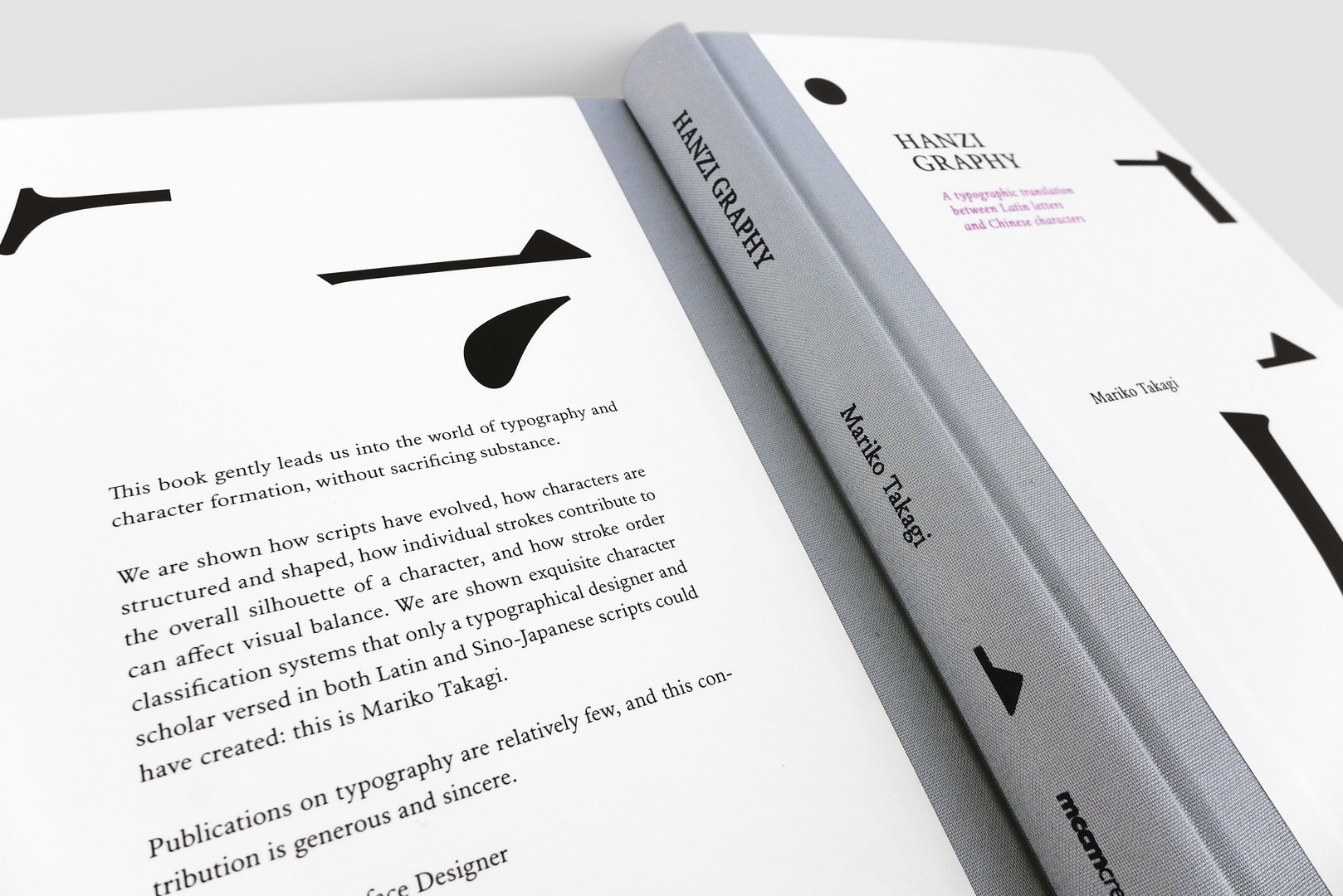 The book “Hanzi Graphy” is based on research that started in 2008 and aims to create a bridge between the Latin and the Chinese writing systems. By using typography as a common thread, this book is an introduction to and primer for Chinese characters. The purist book design and the graphical visualisation of the content enhance the accessibility of the topic. Thanks to the direct comparison of Chinese symbols and Latin letters the reader is able to discover unexpected similarities and differences.