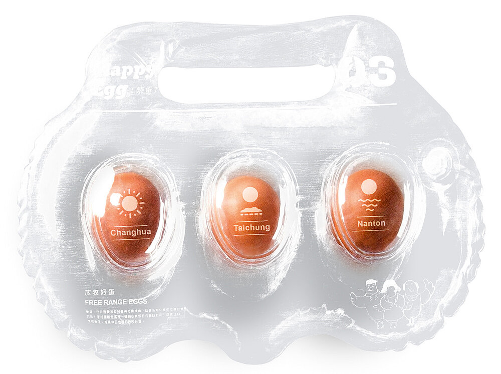 Since 99 per cent of the eggs produced in Taiwan come from battery cages, the packaging concept of “Happy Egg” is to create and lend eggs as food a new kind of image. In addition, it is also the aim to advocate free-range eggs and promote local agriculture. The brand developed for this purpose is built on six notions: friendliness, happiness, freedom, sunshine, fertility and water. The packaging is made of transparent PVC material to both symbolise the free-range production of these eggs and protect the eggs against damage. Based on Taiwanese festivals and customs, three distinct packaging designs were created for the Chinese New Year, Christmas and birthdays.