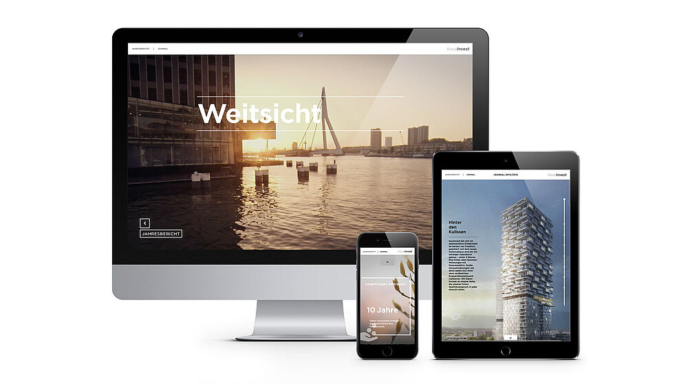 hausInvest is one of the top 5 open-ended property funds. What distinguishes this particular fund is its broad view of the market, curiosity, and openess to networks with external experts – the very topics in the online annual report for 2015/2016. Excellent research in the here and now – crystallising the classical from future issues and innovations on the market gives fascinating insights and inspiration. Bringing the reader to the people rethinking the future: hausInvest employees and external experts. The reader will find visually stimulating multimedia and depth of detail.