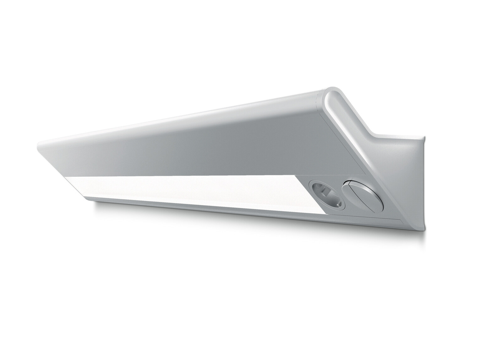 The modular LED wall lamp H&C was designed for use in nursing and wellness facilities. The supporting aluminum profile can be equipped with different lighting and electronic components. With the direct and indirect lighting elements, which can be activated separately, it is possible to generate biodynamic (circadian) light. With its straight lines and curved contours the system blends in with any environment. Thanks to the flush design of all elements, this wall lamp is very easy to clean.