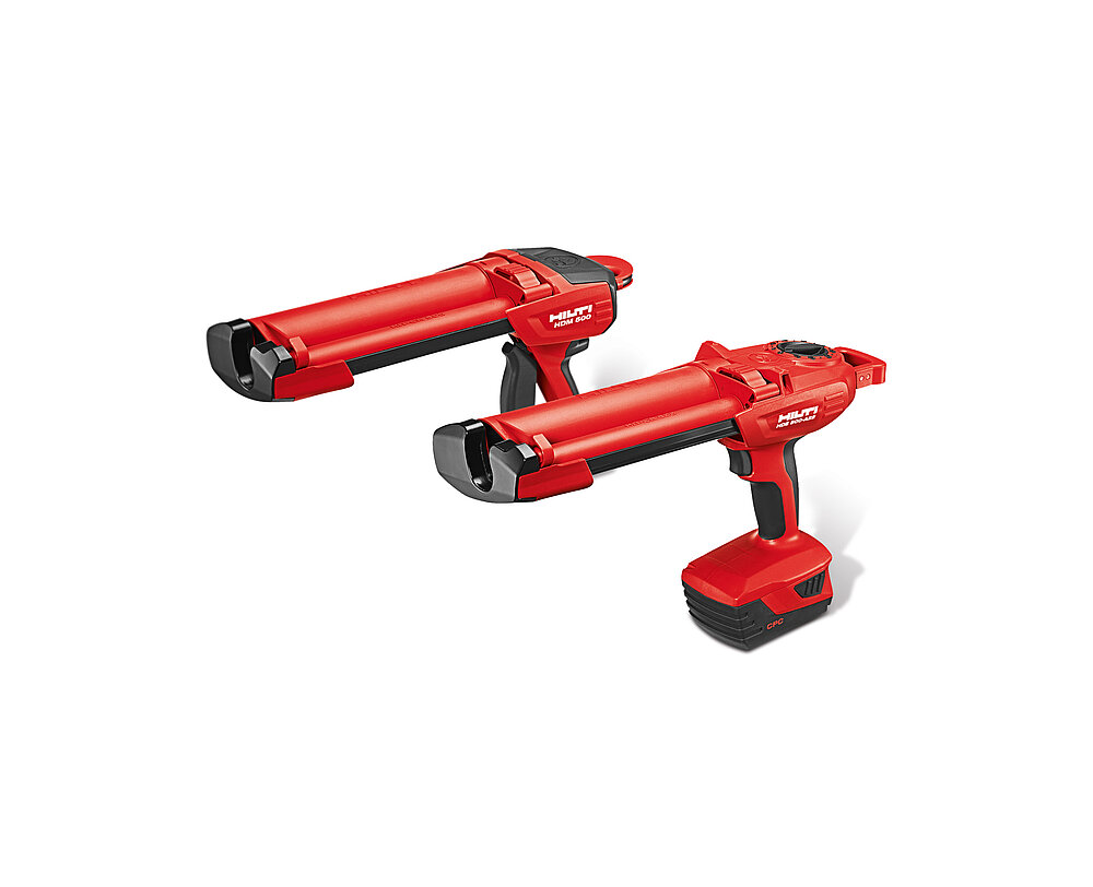 The HDE and HDM dispensers allow for fast mortar injections without great physical effort at construction sites. They are used together with the pollutant-free Hilti injectable mortar and firestop foams. Both dispensers feature volume control for accurate hole filling and an automatic pressure-release mechanism that reduces mortar consumption and wastage. The ergonomic design ensures effortless dispensing even in deep anchor holes. Particular attention has also been placed on the safe operation of the devices. Self-explanatory colour coding virtually rules out the risk of confusing system components.
