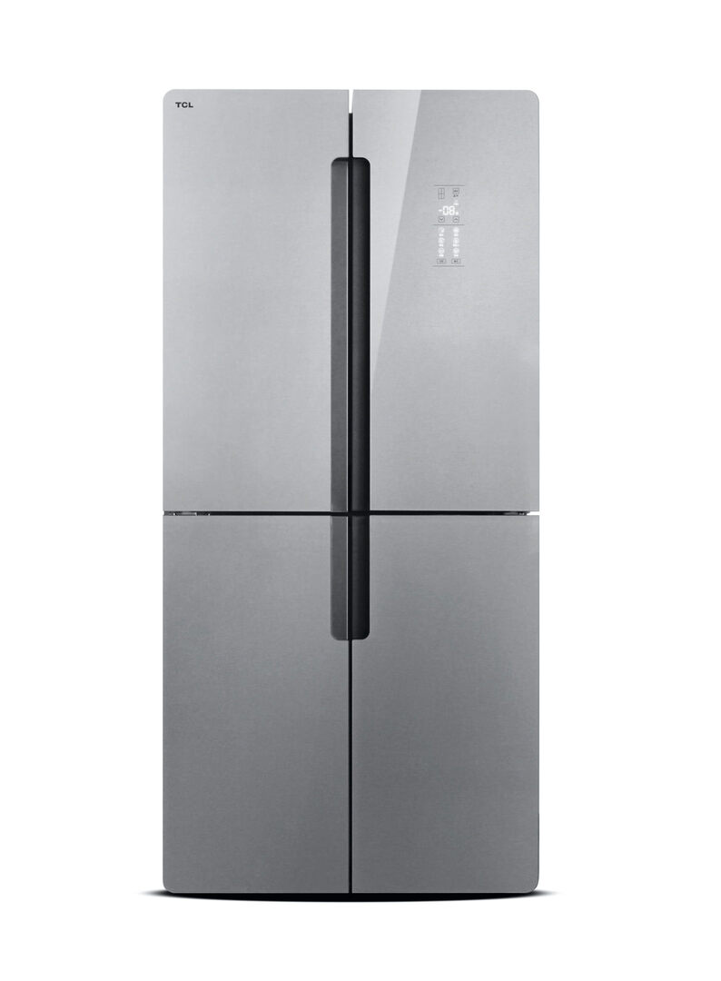 The four-door refrigerator with circulating air cooling is characterised outwardly by a reduced, linear design. Exterior design elements are reflected harmoniously in the interior of the refrigerator. Thus, for example, the metal used for the body design is repeated in the form of a large metal cooling element in the interior. The partitioning of the interior is based on Chinese dietary custom; it can, however, be adjusted flexibly to individual preference.