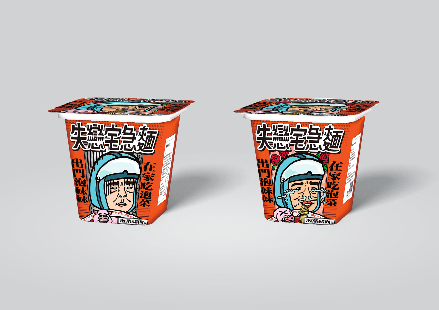 With its packaging design, this instant noodle brand specifically addresses heartbroken men and women. The containers are designed in four versions, matching the four different varieties, with uplifting sayings as well as colourful illustrations of faces. A special aspect of the motif is that it can change. The initially downcast expression of the faces turns happy after filling the containers with hot liquid. This is to illustrate that the meal not only fills the empty stomach but also heals a broken heart.