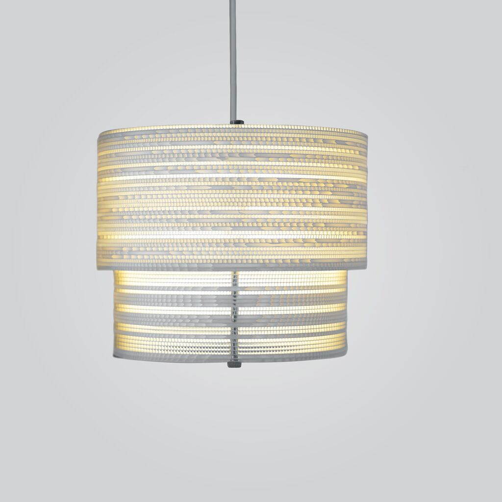 Following a sustainable design principle, HEIMA is made of recycled plastic and recyclable metal. The design product also aims to be accessible to a wide target group. The lampshade consists of recycled plastic – a light yet robust material. Thanks to a simple construction with aluminium rods, the luminaire is easy to self-assemble. The position of the shades can be adapted to different locations and needs, which extends the product life.