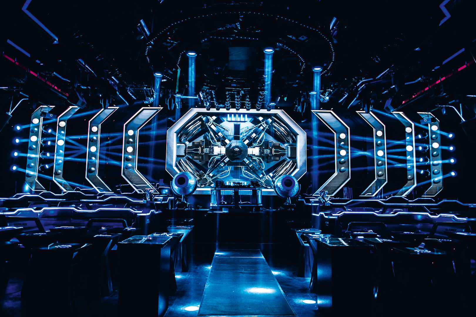 This entertainment venue presents itself as a trendsetting “club of the future”. The style of the interior design is futuristic. Videos, customisable stages and the use of cutting-edge technology meet contemporary entertainment requirements. Futuristic style generally works with shades of white, black and grey. In this club, however, blue has been used to represent a new, creative approach. LEDs and lights divide the space into separate areas and create a cinema-like look.