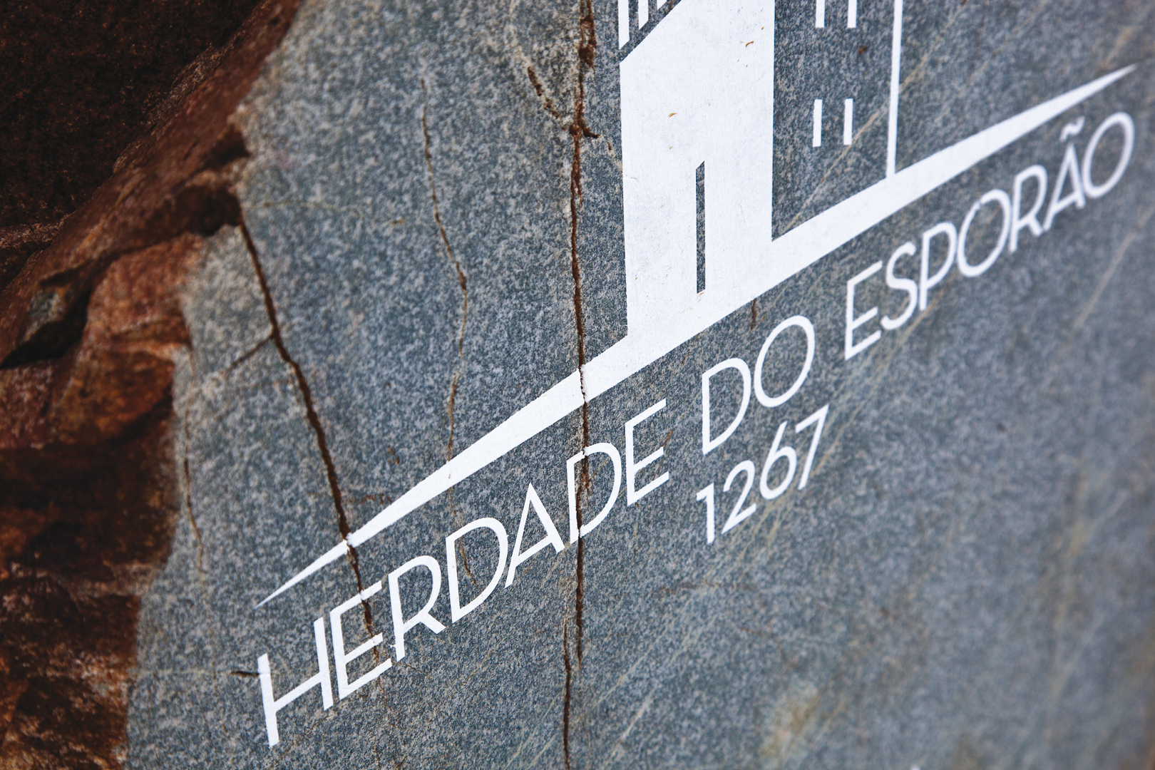 The design of the Herdade do Esporão outdoor signage system integrates large rocks found in the area to convey information. They lend themselves well to the aim of harmoniously balancing man-made intervention and the natural feel of the area, without disturbing the landscape. These rocks were cut flush on one side to accommodate the lettering in white ink. This facilitates the necessary orientation and at the same time integrates the information into the surroundings in a natural way.
