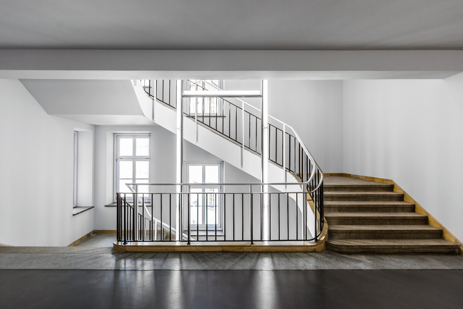 The transformed internal courtyard is a successful symbiosis of old and new. Its most striking feature is a sculpture-like cube, which opens outwards to create a central communication and meeting point.