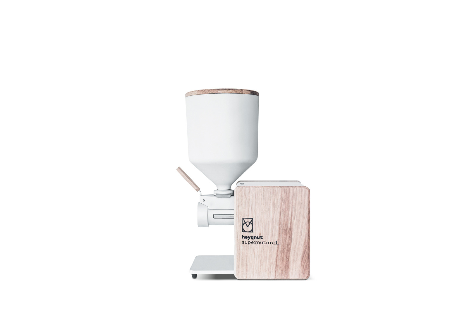 The heyqnut nut grinder impresses due to its combination of light-coloured wood and metal as well as with clear lines which impart a timeless appearance. Its functionality and local manufacture make it also particularly sustainable.