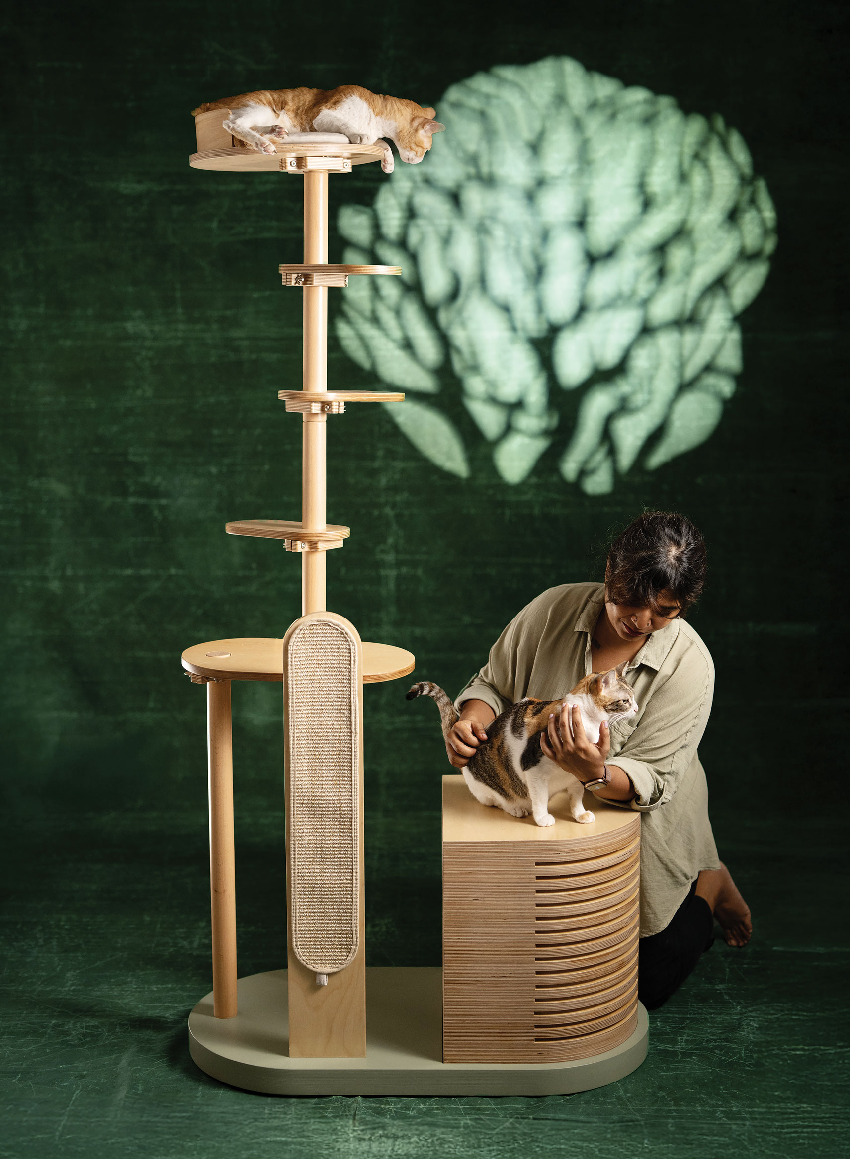 Hideaway Haven is a modular and adaptive sculptural habitat that reimagines pet-centred living as an empathetic landscape fostering interaction, independence, and comfort. With a proprietary Clamp-to-Connect system, it can be reconfigured and extended without tools to adapt to changing needs. Hideaway Haven supports instinctive feline behaviour and provides a dynamic shared environment for care and companionship while requiring minimal upkeep. Red Dot Award: Design Concept | Ready For Market | Pet Care, Furniture and Accessories