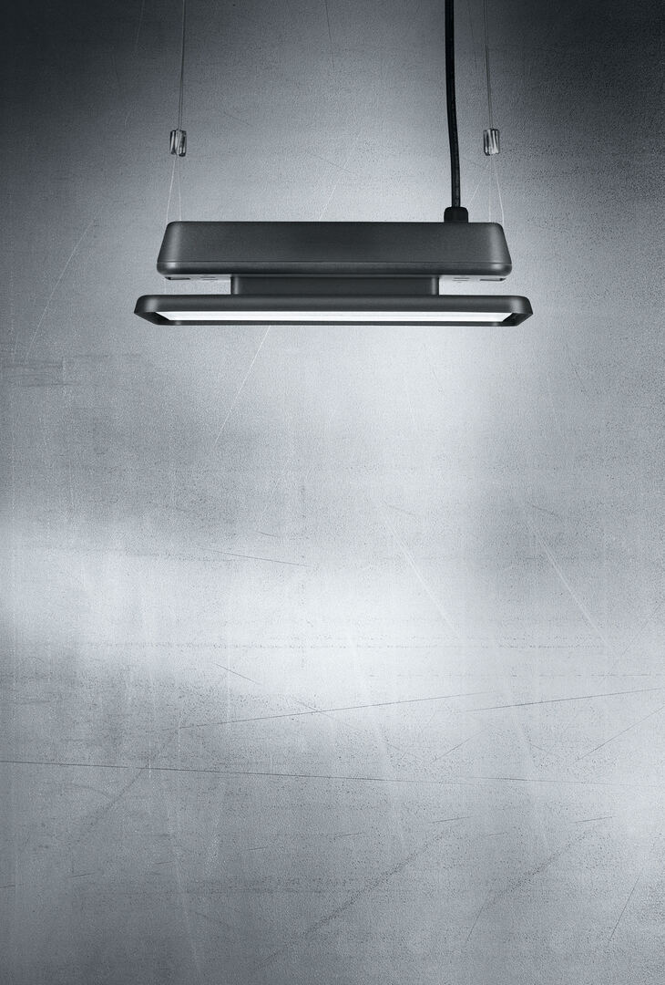 This LED highbay appeals to the eye with its elegantly elongated form, which reinterprets the classical appearance of an industrial lamp.
