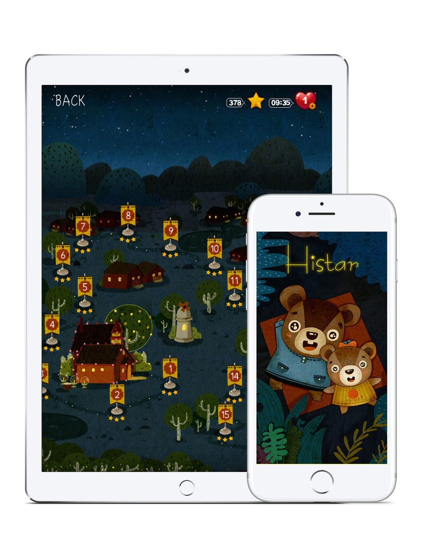The e-game for children captivates with cute, charming characters acting against visually enticing backgrounds, as well as with the emotional story of the two little bears who try to catch stars falling from the sky. The game also stands out in terms of technology as it uses different input mechanisms like turning or tilting the tablet or the phone. This enhances both user fun and skills while playing.