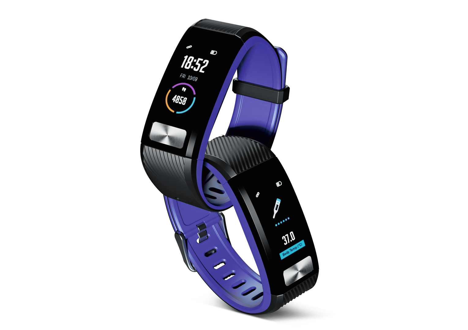 In addition to its function for measuring body temperature, the HJ2 fitness band captivates with an ergonomic design fitted to the anatomy of the wrist.