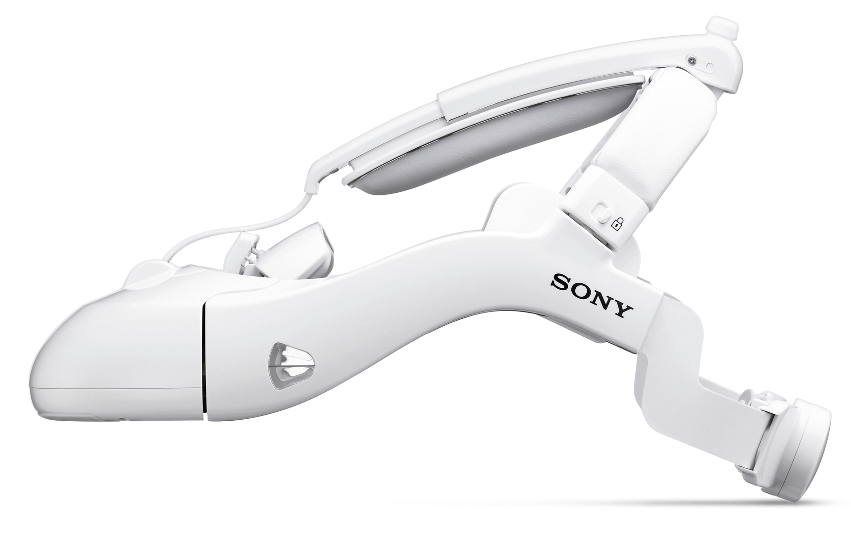 This head mounted display system has an airy and light design. Its dynamic lines embody strong ergonomic qualities along with a modern aesthetic.