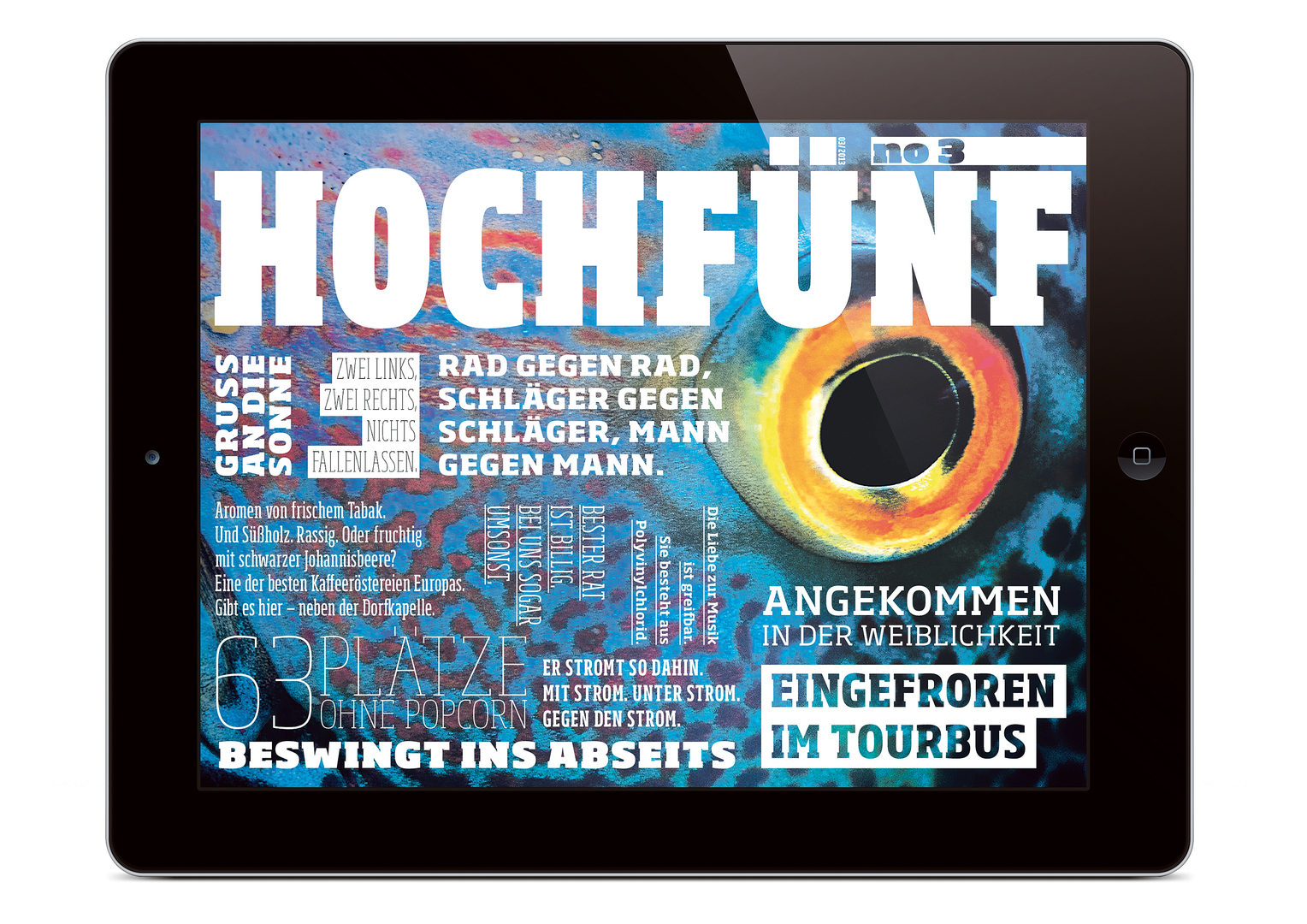 As a magazine app that tells stories about people – what affects them and how they affect others – the hochfünf Magazin app for iOS and Android devices builds on the print version. With rich media enhancements, such as additional images, sounds and videos and a wild layout, the app conveys its content in a unique and fitting way. Typography, photography and graphic design are implemented without following any specific pattern or category. Dynamic and interactive elements make the stories even livelier.