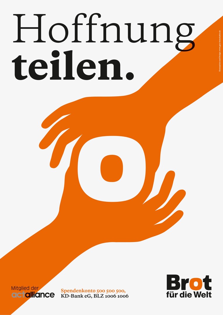 With a simple message and a stylistic approach that is both distinctive and memorable, this poster promotes the German aid organisation Brot für die Welt (Bread for the World). Simultaneously, it also aims to develop strong, independent brand communication. The “share hope” poster features a tilting image effect: in turns, viewers discern an eye and two hands that jointly shape the distinctive “o”, which is derived from the brand symbol for Brot für die Welt. The eye-catching position of this detail helps beholders identify the message’s source, lending it a high degree of recognition value.